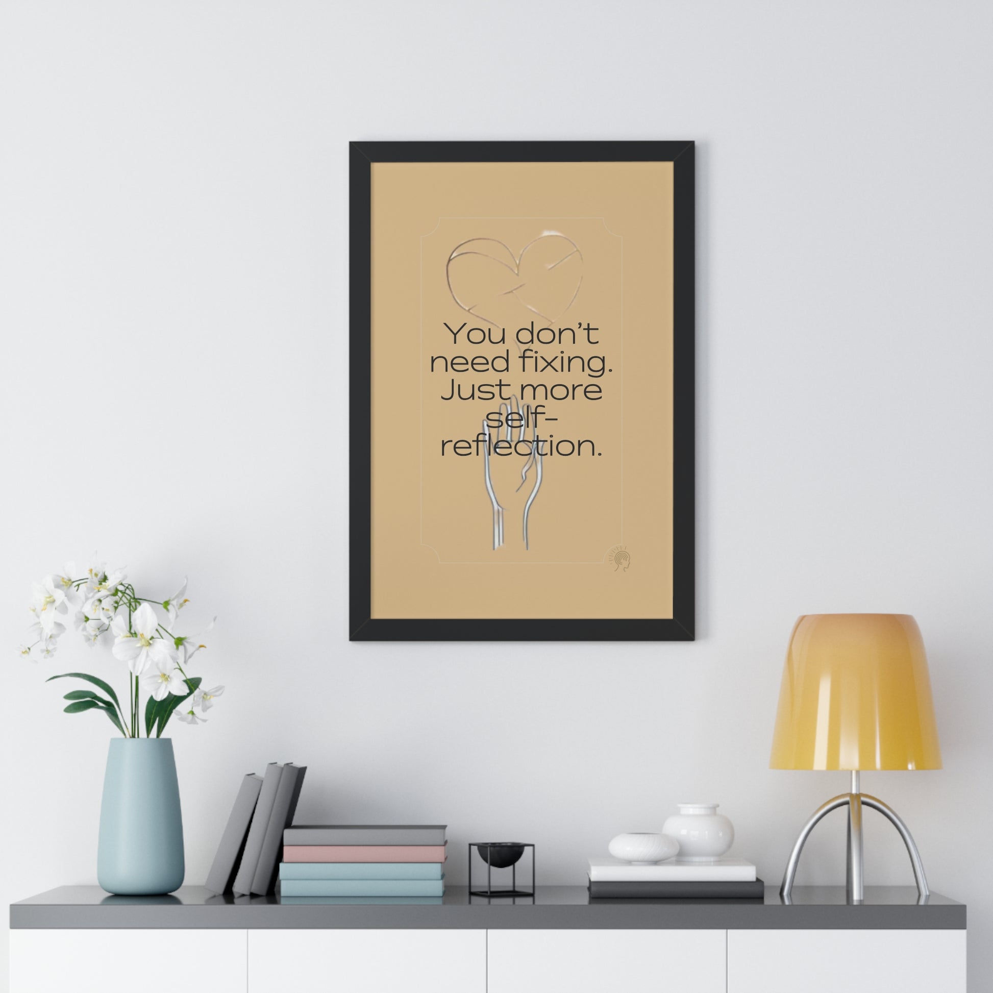 Elevate the ambiance of any room with this elegant framed vertical poster. Designed to inspire and motivate, the gentle reminder that "You don't need fixing. Just more self-reflection." resonates deeply, making it a perfect addition to your home or office.